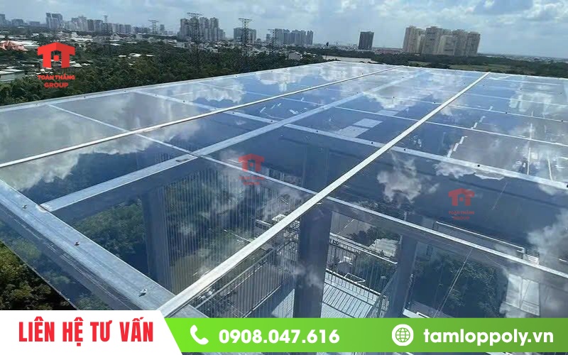 - Chi phí lắp đặt: Quá trình lắp đặt tấm poly đơn giản, nhanh chóng hơn so với kính cường lực vốn yêu cầu kỹ thuật cao và độ chính xác lớn. Điều này giúp rút ngắn thời gian thi công, giảm chi phí phát sinh và hạn chế gián đoạn sinh hoạt hoặc kinh doanh.