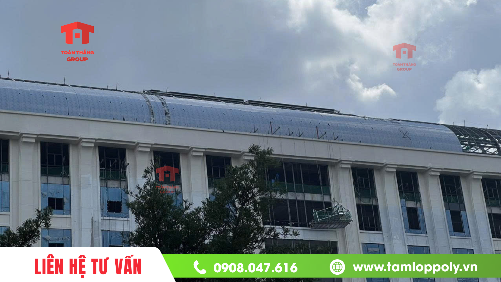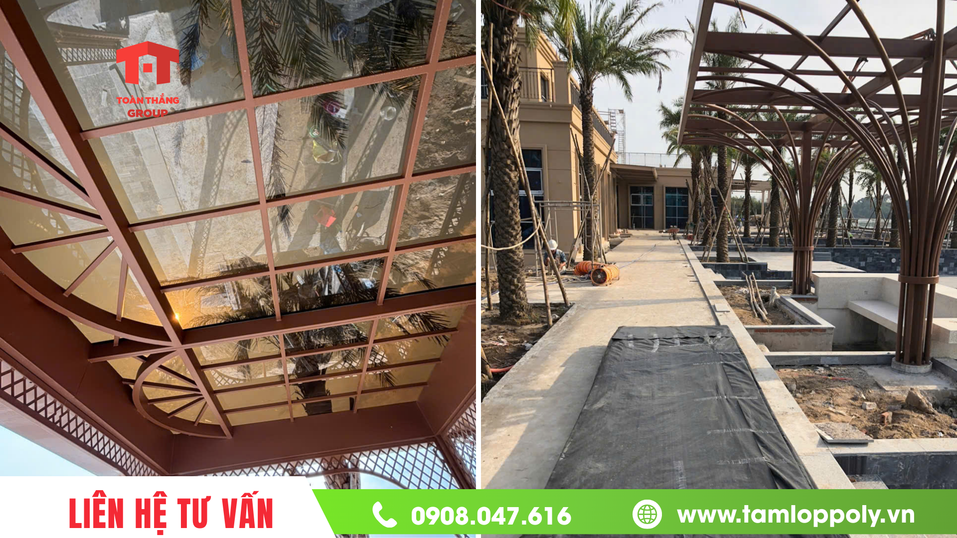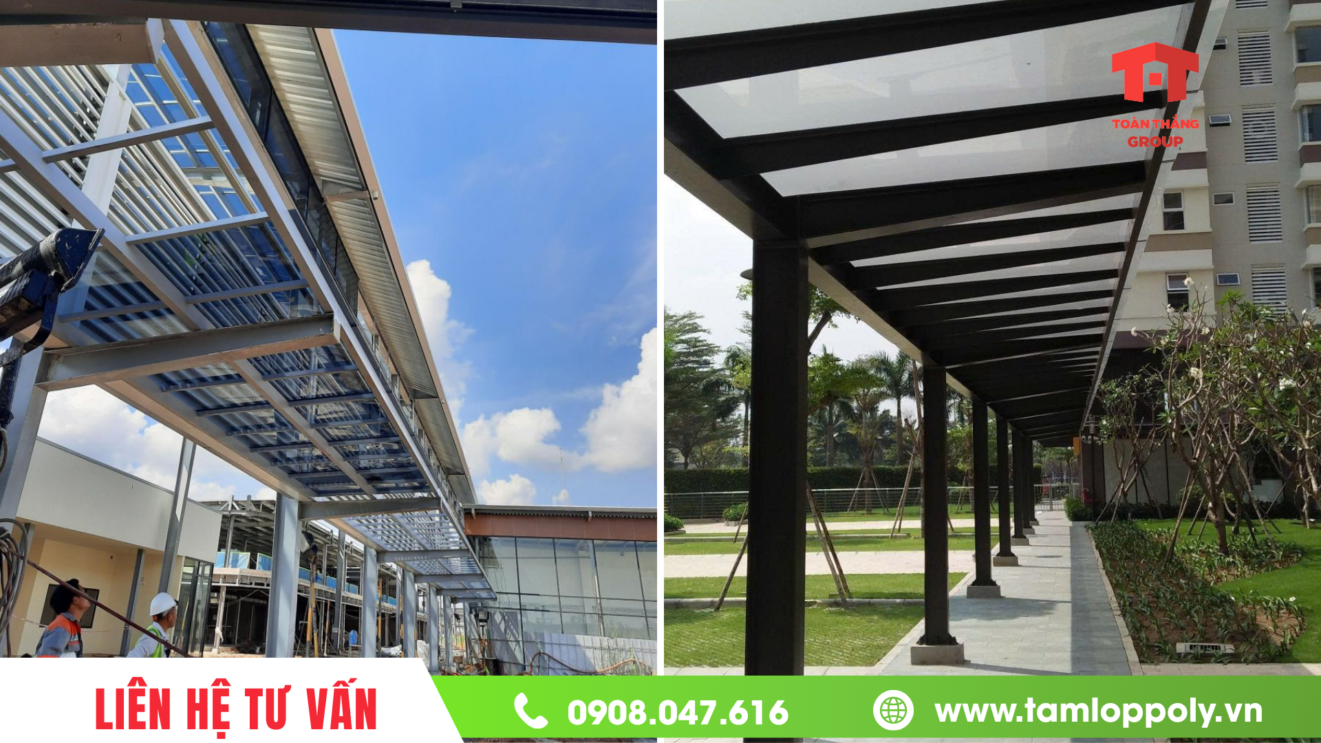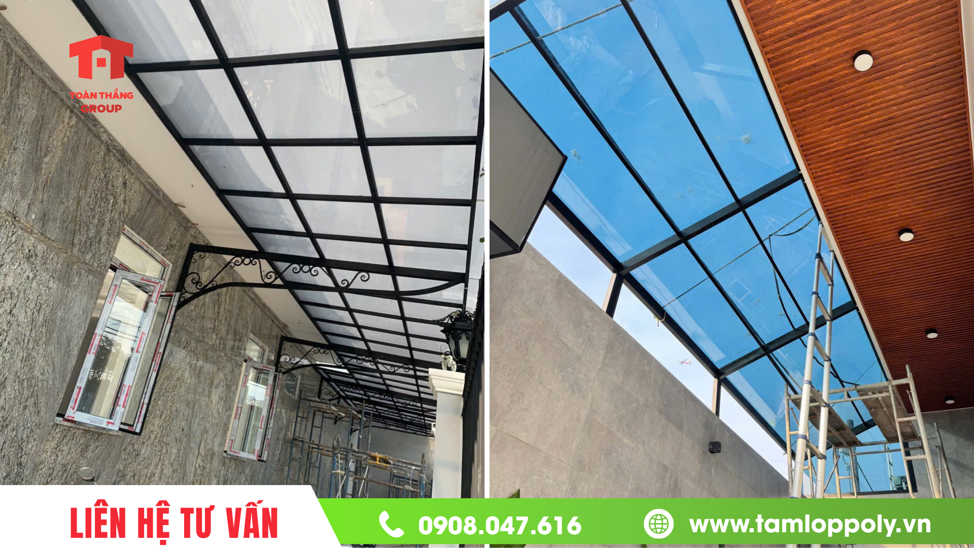 Ngày nay, mái không chỉ còn là hạng mục che mưa che nắng mà còn đóng vai trò tạo điểm nhấn kiến trúc cho công trình. Thay cho những mái phẳng đơn điệu, các thiết kế mái vòm, mái kiểu hay mái canopy ngày càng được phản ứng dụng rộng rãi nhờ tính thẩm mỹ và công năng vượt trội. Tuy nhiên, kính lại nặng và khó uốn, trong khi tôn thiếu khả năng lấy sáng và kém tinh tế. Chính vì vậy, tấm lợp lấy sáng polycarbonate đã trở thành giải pháp vật liệu tối ưu, giúp hiện thực hóa các ý tưởng mái lấy sáng hiện đại. Cùng Toàn Thắng Sài Gòn tìm hiểu những ưu điểm nổi bật khiến polycarbonate được ưa chuộng trong thi công mái hiện nay.