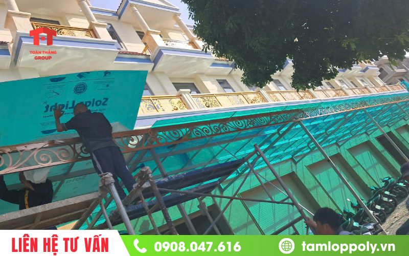 Bên cạnh đó, quy trình làm việc rõ ràng, hỗ trợ khảo sát và báo giá nhanh cũng giúp khách hàng tiết kiệm thời gian và hạn chế rủi ro khi triển khai. Đặc biệt, Toàn Thắng có đội ngũ thi công chuyên nghiệp, thi công đúng kỹ thuật như lắp đặt đúng chiều UV, đảm bảo khe giãn nở và sử dụng phụ kiện đồng bộ sẽ ảnh hưởng trực tiếp đến độ bền và khả năng chống nóng của mái poly.