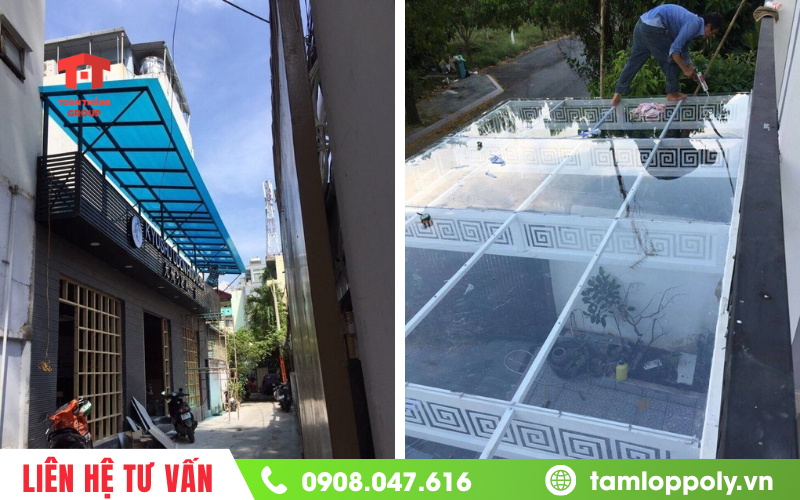 Ngược lại, tấm poly màu xanh mang lại cảm giác dịu mắt hơn, phù hợp với các không gian ngoài trời cần sự thoải mái như nhà xe, mái hiên hoặc quán cà phê. Màu xanh cũng giúp che bớt khuyết điểm và tạo cảm giác mát mẻ ngay từ thị giác.
